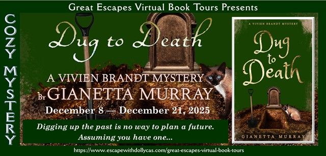 Welcome to my stop on the Great Escapes Virtual Book Tour for Dug to Death: A Vivien Brandt Mystery by Gianetta Murray. Stop by each blog on the tour for interviews, guest posts, spotlights, reviews and more!
