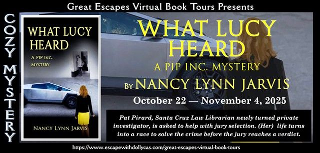 Welcome to my stop on the Great Escapes Virtual Book Tour for What Lucy Heard: A PIP Inc. Mystery by Nancy Lynn Jarvis. Stop by each blog on the tour for interviews, guest posts, spotlights, reviews and more!