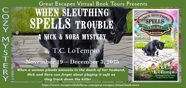 Welcome to my stop on the Great Escapes Virtual Book Tour for When Sleuthing Spells Trouble (Nick and Nora Mystery) by T. C. LoTempio. Stop by each blog on the tour for interviews, guest posts, spotlights, reviews and more!